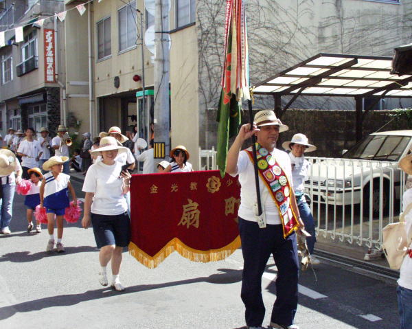 少年少女全国大会(2000.8.6) ■ブラスバンドで金光町を行進1 |