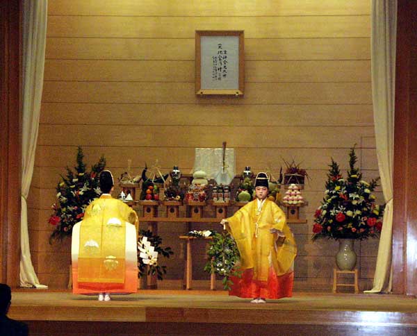 本教の祭典に、『吉備舞』が奉納されるようになる時期については定かではありませんが、明治三十四年頃には、大教会所(本教)の祭典に、『吉備楽』による奏楽と『奉納舞』が定着していたようです。