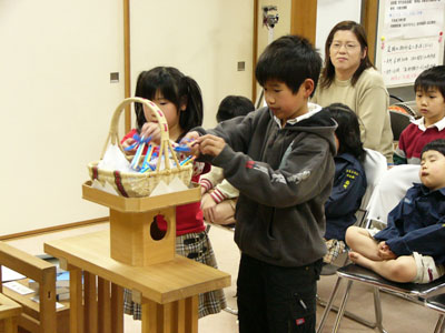 進級、進学を神様に願うお祭りです。作文に願いとお礼を書いて神様にお供えします。また、鉛筆をお供えします。