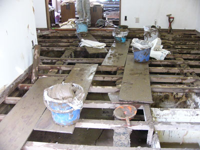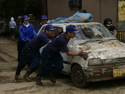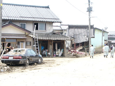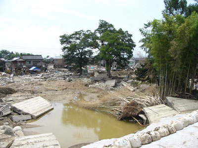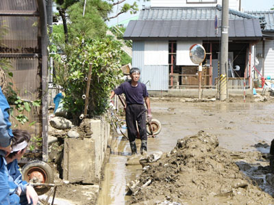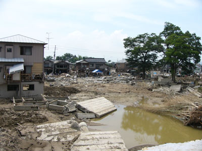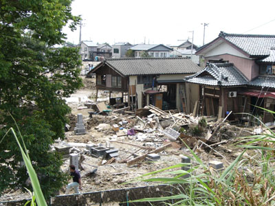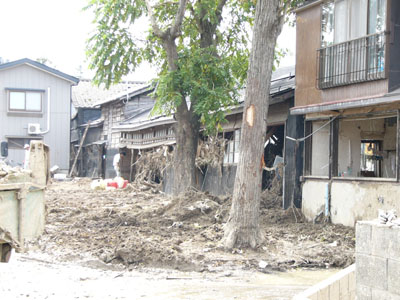 まだ、泥水がのこるところも