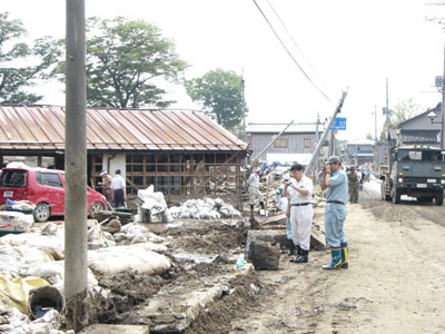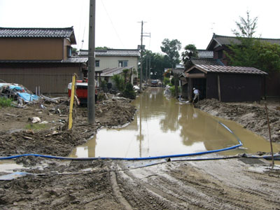 中之島町、今回は堤防決壊場所付近とあって、すさまじいかぎり……