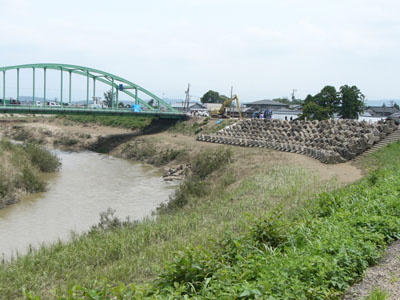 決壊堤防。堤防から撮影