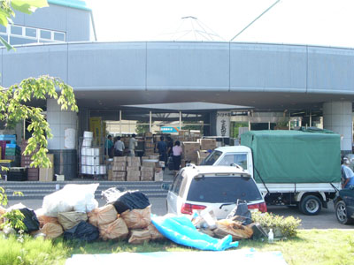 救援物資も山住されている。