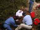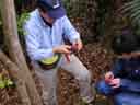 | ■中には、手榴弾(不発弾)も出てくる。発見後は赤いテープを巻いて、自衛隊に処理を任せる。 |