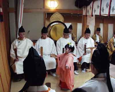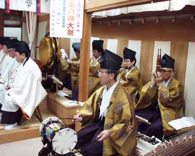 | ■神様へ氏子の真心を形として供えます。コーラス、典楽、吉備舞の奉仕。 |