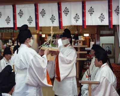 ■奉幣……神様の着物をお供えする行事です。 |
