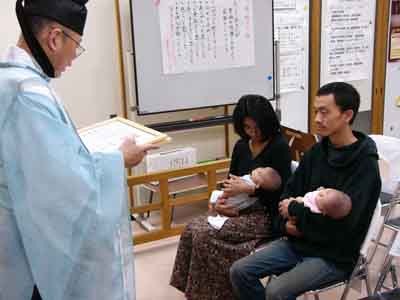 | ■信奉者の誕生お礼初参り。十月十日の間祈られての誕生です。 | |||