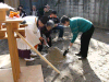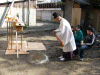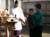 世間の地鎮祭は、お土地の汚れを祓い鎮めるお祭りをしますが、金光教では、お土地に対してここに住まわせて頂く、使わせて頂くお断り、そして家の繁栄をお願いする、神様へお断り、お詫び、お礼、お願いの意味でのお祭りとして行われます。