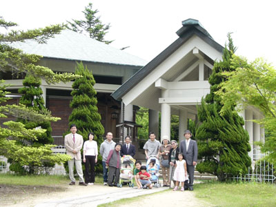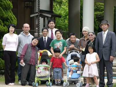歴代金光様奥城にて記念撮影。新緑がまぶしかったです。