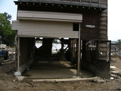 ガレージの奥に見えるのが決壊堤防