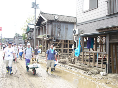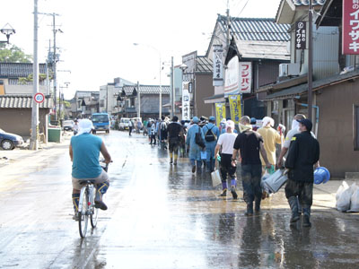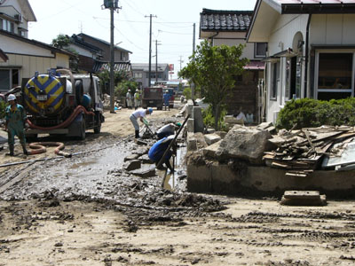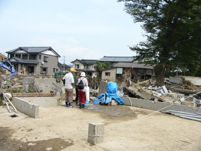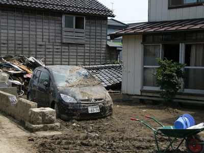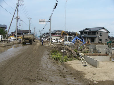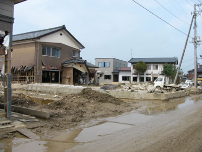 まだ、泥水がのこるところも