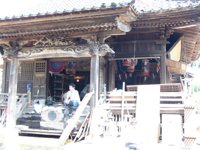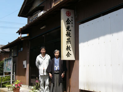 | 金光教燕教会の玄関で教会長先生と。 |