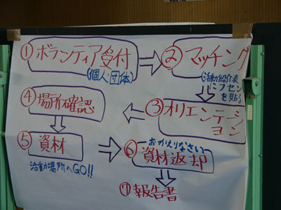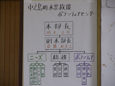 | ボランティアの組織図。ボランティアをまとめるのも大変なこと。 |