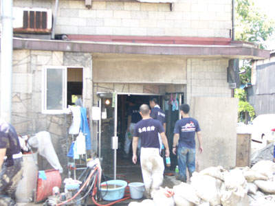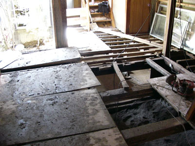 | 床下の泥の撤去、奥の庭の泥、排水、下水の泥撤去 |