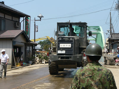 | 自衛隊の大型車両が常に行き交う |