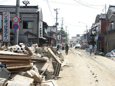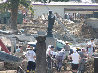 長岡市の消防団の人々も応援。勤務外である。 |