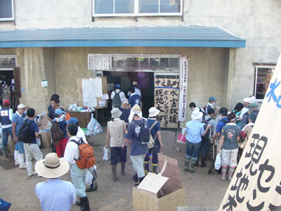 | 奉仕は4時まで。センターに帰ってくる人々 |