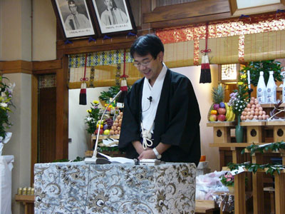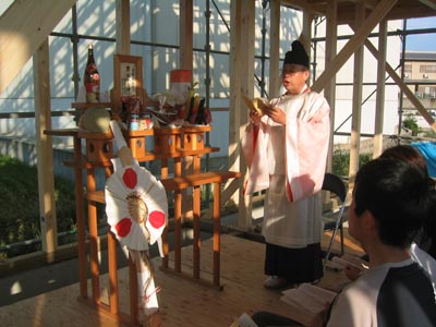 親先生は、信奉者の上棟式をお仕えいたしました。 |