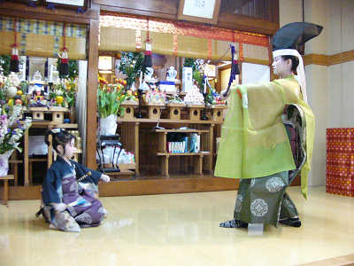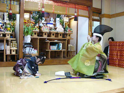祭典に先立ち、吉備舞の奉納がありました。歴史舞と言って大変に長い曲で、一つの物語を舞うものです。「足柄山」という曲目でお供えしました。